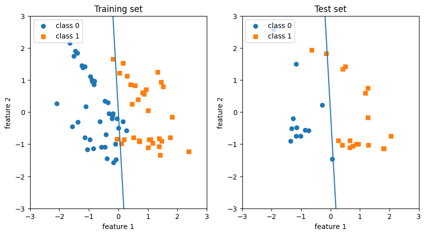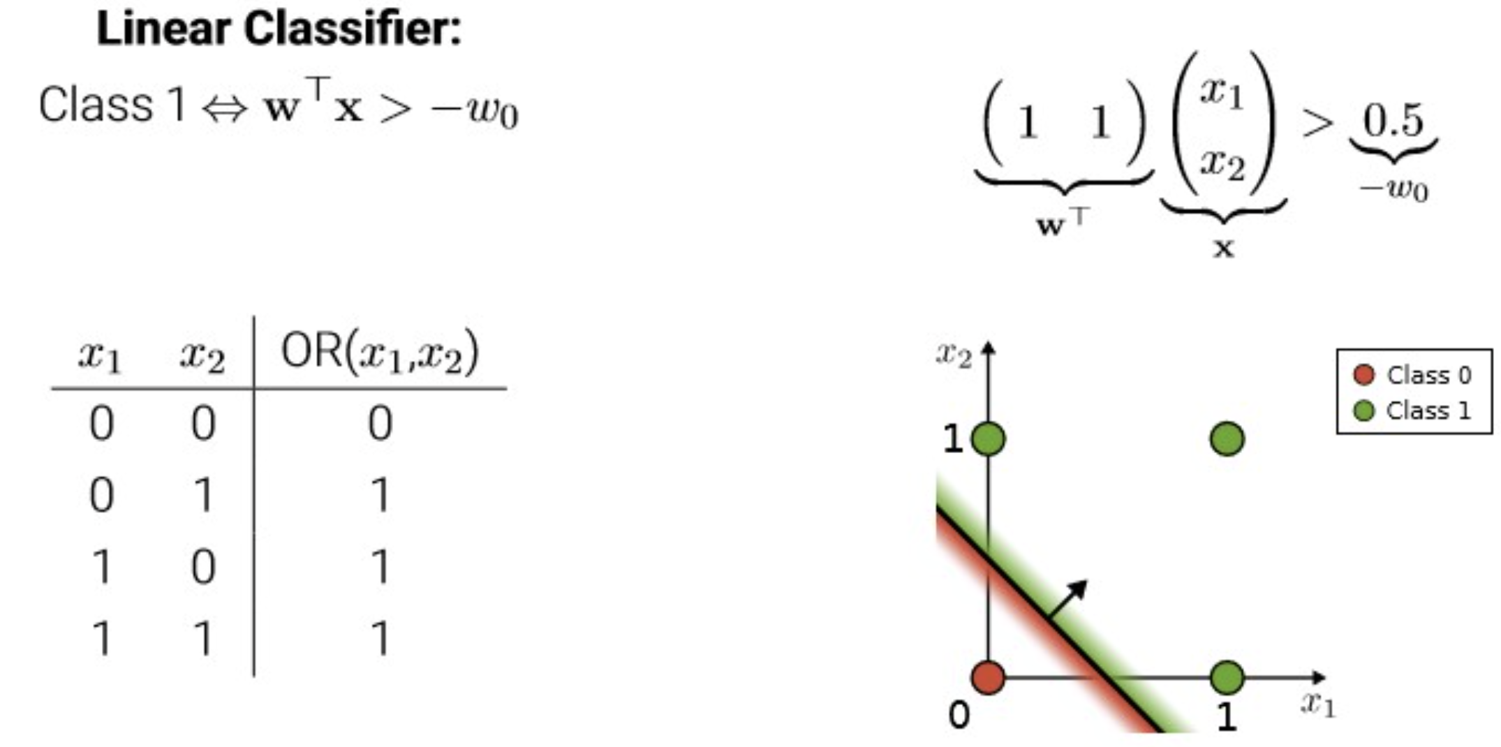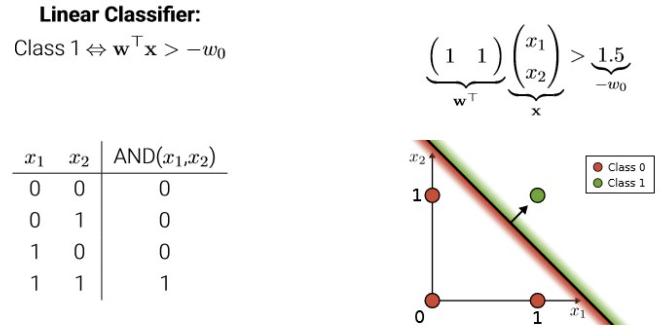 class Perceptron(): def __init__(self, num_features): self.num_features = num_features self.weights = np.zeros((num_features, 1), dtype=float) self.bias = np.zeros(1, dtype=float) def forward(self, x): # $\hat{y} = xw + b$ linear = np.dot(x, self.weights) + self.bias # comp. net input # train에서 보면, y[i] 차원으로 데이터가 들어오니, vec * vec 연산. # linear = x @ self.weights + self.bias predictions = np.where(linear > 0., 1, 0) # step function - threshold return predictions # 'ppp' exercise def backward(self, x, y): # pred랑 ground_truth 값 비교. return y - self.forward(x) # 중간 중간 reshape이 과연 필요할까? def train(self, x, y, epochs): for e in range(epochs): for i in range(y.shape[0]): errors = self.backward(x[i].reshape(1, self.num_features), y[i]).reshape(-1) self.weights += (errors * x[i]).reshape(self.num_features, 1) self.bias += errors def evaluate(self, x, y): predictions = self.forward(x).reshape(-1) accuracy = np.sum(predictions == y) / y.shape[0] return accuracy