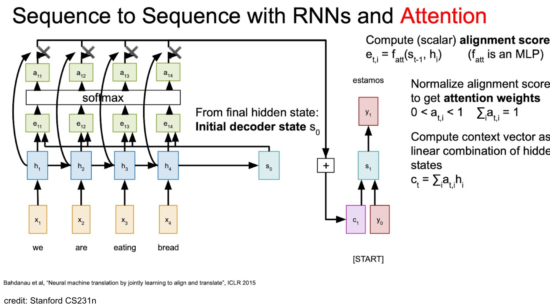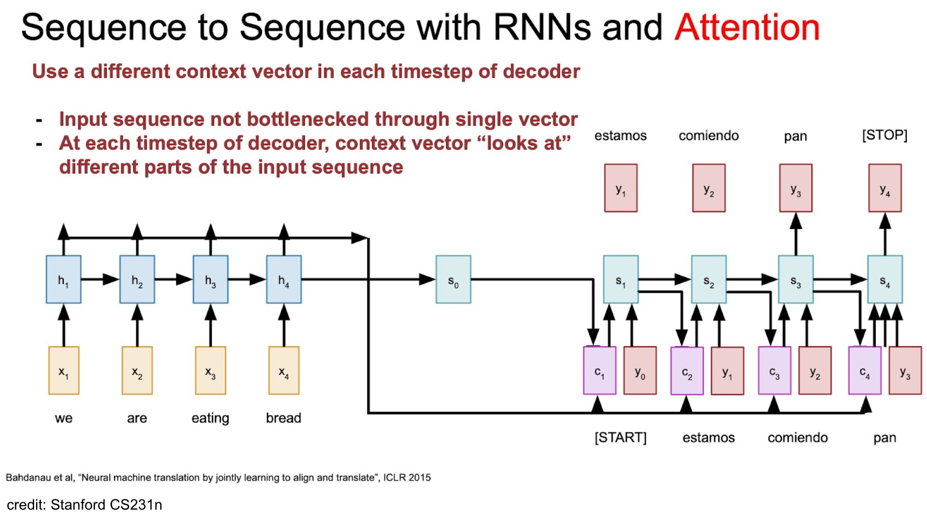 모든 input 정보를 하나의 state(encoder의 last state)에 담는 게 어렵다.with attention