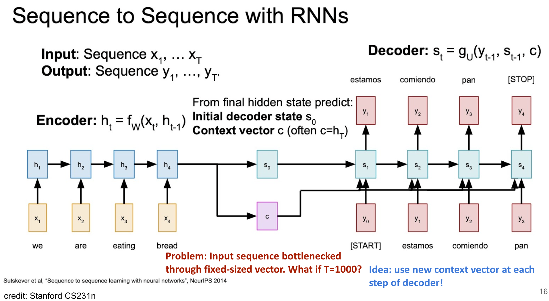 many-to-many 상황에서 context vector 압축이 굉장히 challenging.