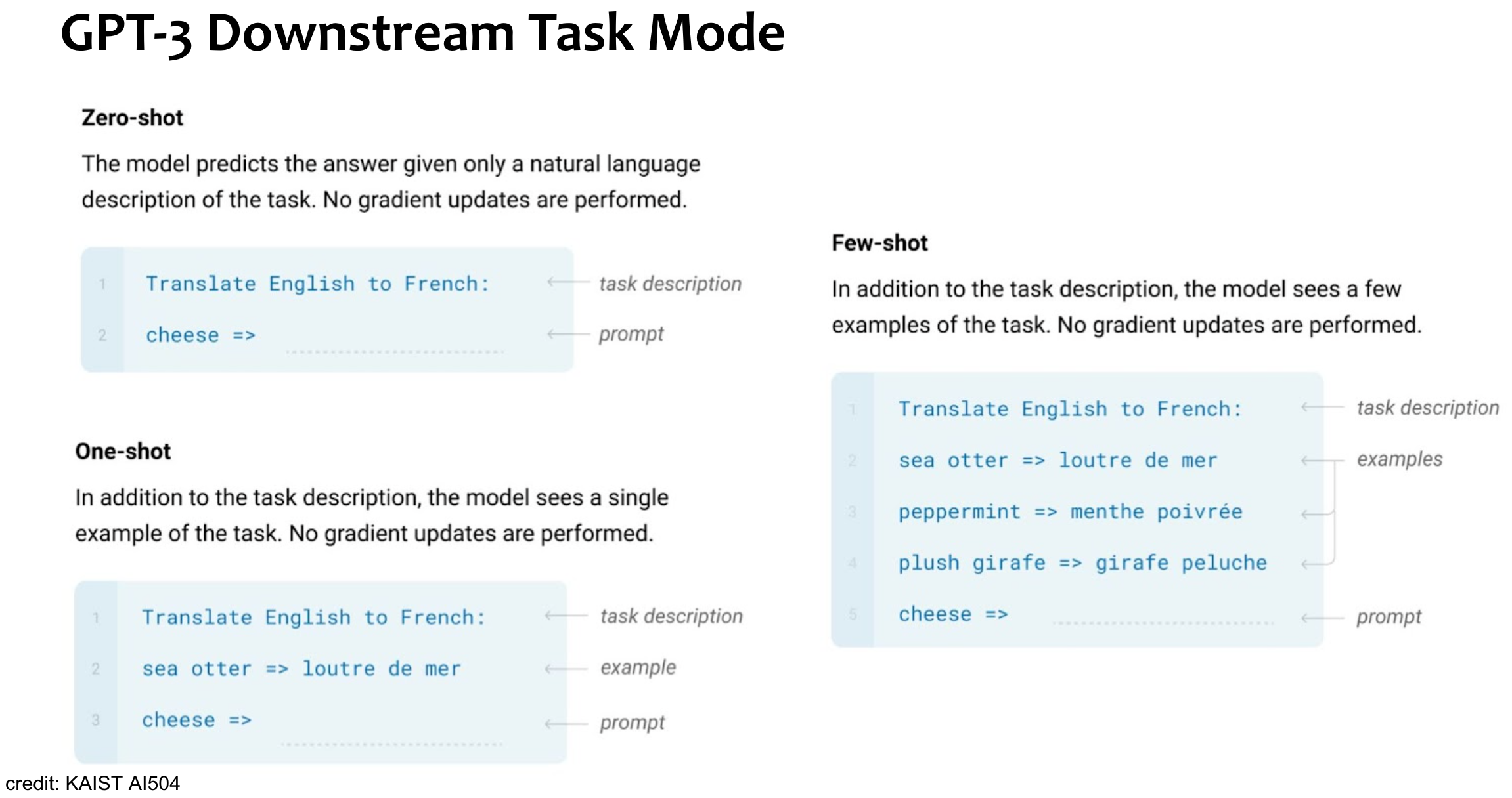 → prompt 를 어떻게 넣느냐가 중요해짐. → prompt-engineeringN shot learning
