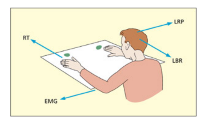 One could take many different measures in a forced-oice response task: behavioral (reaction time [RT], errors) or biological (electromyographic [EMG], lateralized readiness potential [LRP], lateralized BOLD response [LBR]). All measures could potentially be used to inform cognitive theory. Adapted from Henson, 2005. By kind permission of the Experimental Psyology Society.