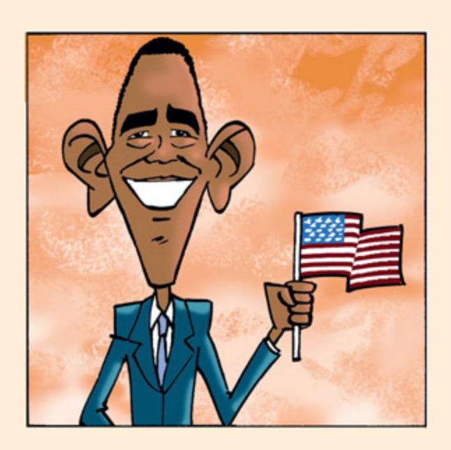 상당한 왜곡에도 불구하고 즉시 알아볼 수 있는 카리커처의 예시이다. 개인의 독특한 특징이 과장되어 있으며, 실제 얼굴보다 카리커처를 더 빠르게 인식하는 현상의 원인을 탐구하는 맥락에서 제시된다.