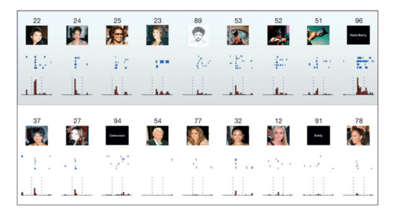 - 인간의 중간 뇌엽에서 할리 베리와 같은 특정 인물에만 반응하는 뉴런을 확인(예: 5명의 연예인 중 특정 인물에 대한 반응률 2.3배 이상 증가)