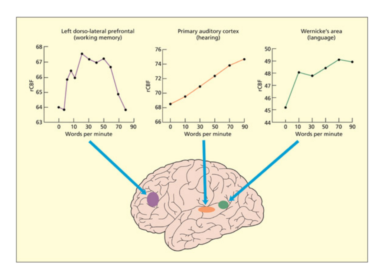 A region of “activity” refers to a local increase in metabolism in the experimental task compared with the baseline, but it does not necessarily mean that the region is essential for performing the task. Lesion studies might provide evidence concerning the necessity of a region for a task.