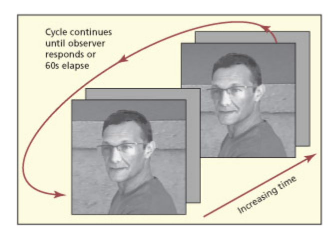 A failure to notice the appearance/disappearance of objects between two alternating images.