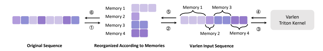 - 토큰을 메모리 라우팅 결과에 따라 그룹화 → varlen 입력 시퀀스 생성.