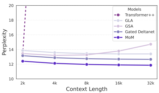 - Through empirical evaluation, we show that MoM outperforms strong linear sequence modeling baselines across a variety of language tasks, particularly on recall-intensive tasks. MoM even achieves performance on par with Transformer models, a feat that current linear sequence modeling methods struggle to match.