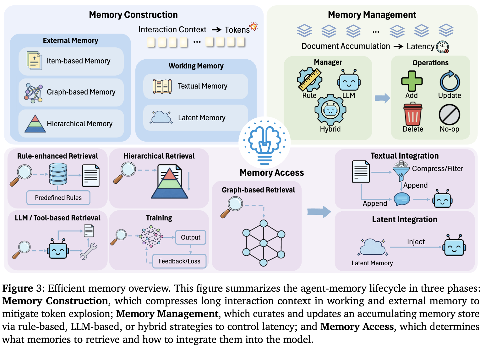 - Efficient Memory: Techniques for compressing historical context, managing memory storage, and optimizing context retrieval.