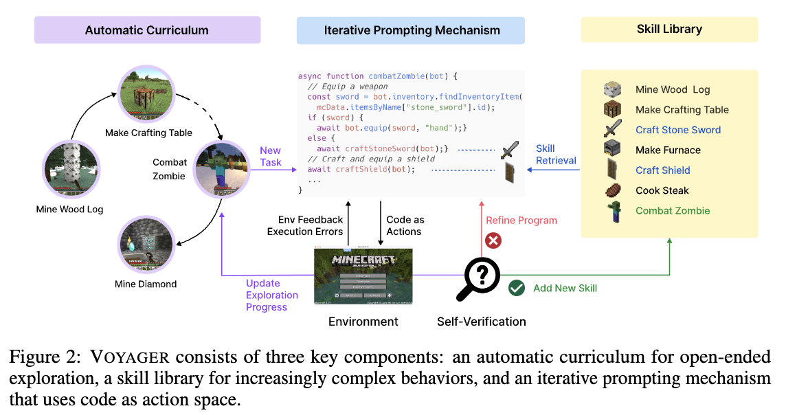 - ๐ค VOYAGER๋ Minecraft์์ LLM ๊ธฐ๋ฐ์ ์์จ์ ์ธ ํ์ ํ์ต ์์ด์ ํธ๋ก, ์ฌ๋์ ๊ฐ์ ์์ด ์ง์์ ์ผ๋ก ์ธ๊ณ๋ฅผ ํ์ํ๊ณ ๋ค์ํ ๊ธฐ์ ์ ์ต๋ํ๋ฉฐ ์๋ก์ด ๊ฒ์ ๋ฐ๊ฒฌํฉ๋๋ค.