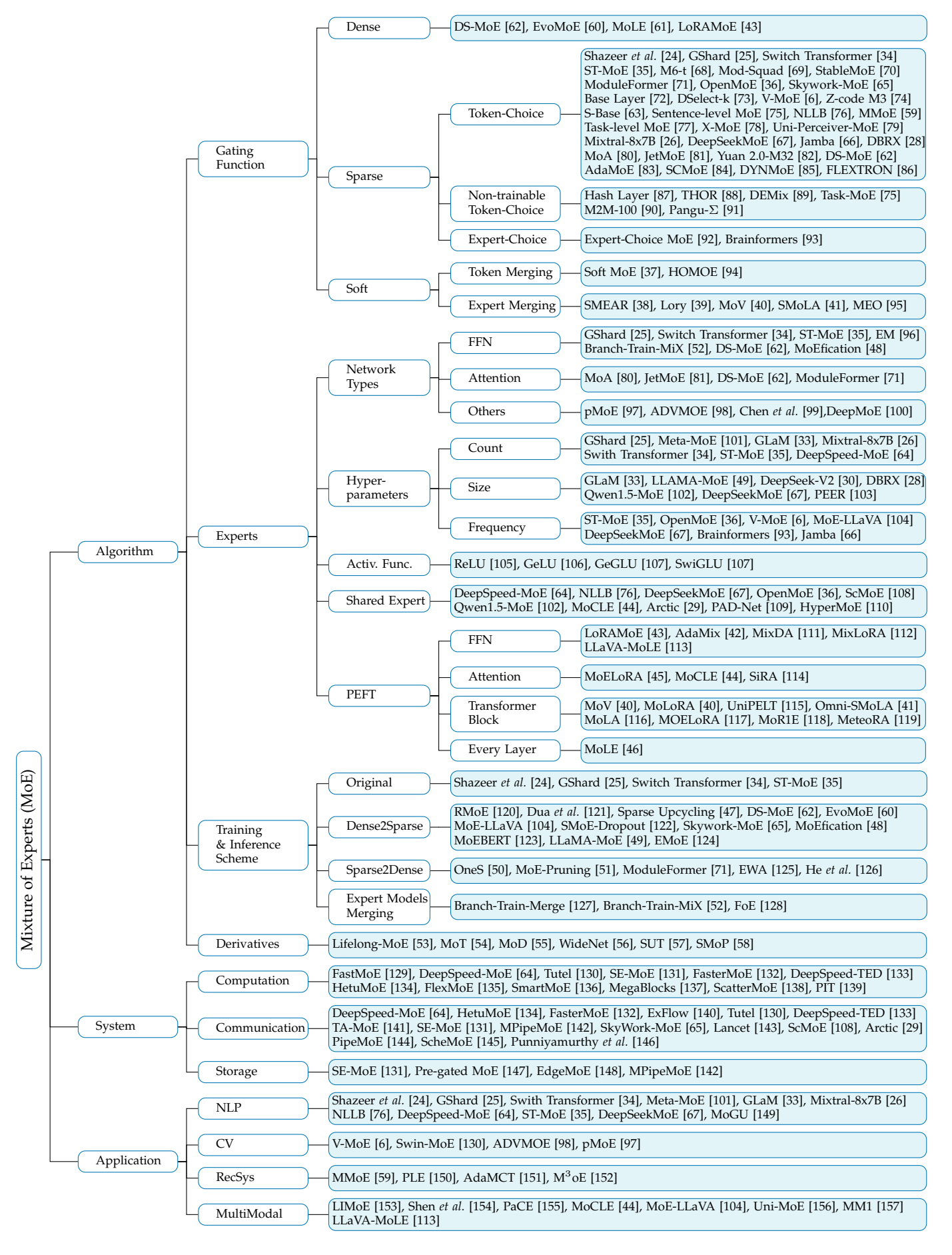 - MoE의 알고리즘, 시스템, 응용 분야별 분류 체계 제안