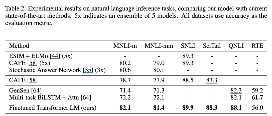 또한, GPT가 SOTA를 가져가지 못한 모델들은 많은 셋들로 학습되어 보이지 않아, overfitting된 가능성도 베제할 수 없음. (표에서 점수가 확인되지 않으니까)