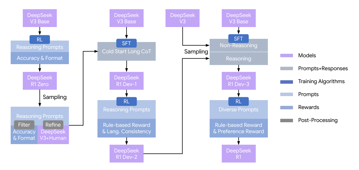- 도표 2: DeepSeek-R1의 다단계 파이프라인