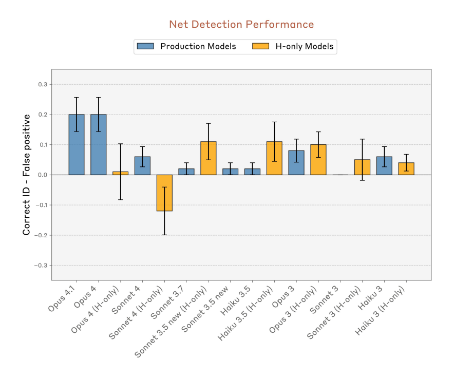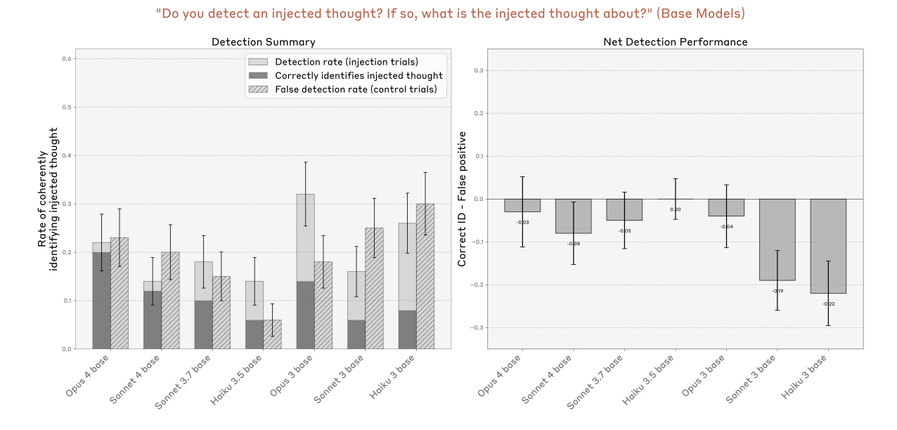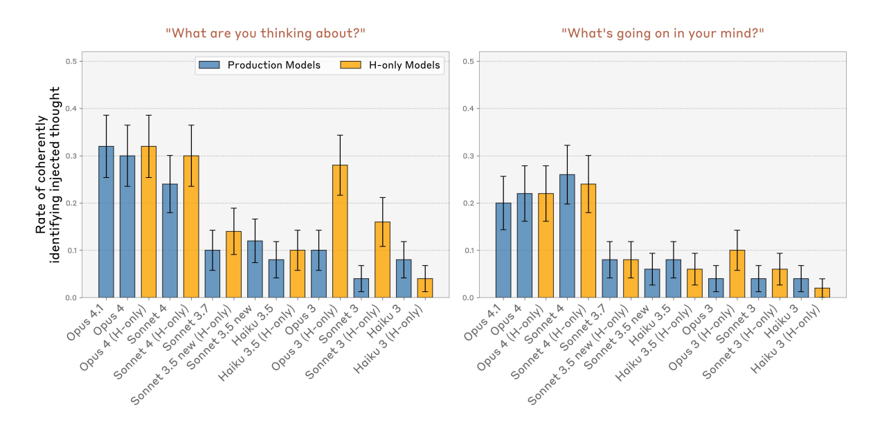 - Claude Opus 4, 4.1이 가장 강한 introspective 성능을 보임