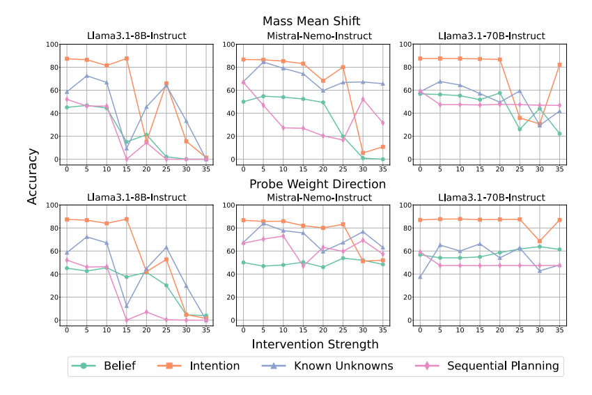- 조작의 한계: Belief, Sequential Planning은 activation intervention으로 개선 불가 — fine-tuning 필요