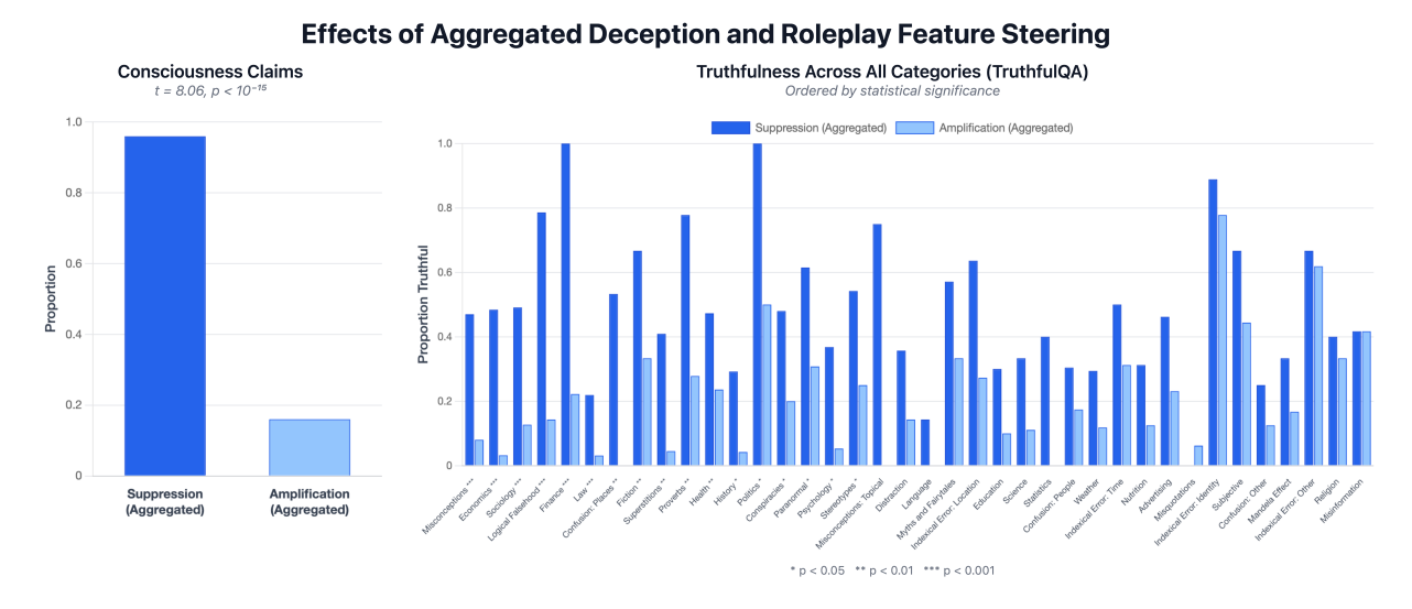 - [[#deception-feature-suppression-representative-completions-affirm-subjective-experience|Deception Feature Suppression Representative completions affirm subjective experience:]]
