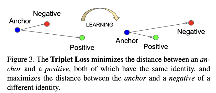 - 얼굴 인식에사 하고자 하는 것이 동일 ID에 대해서는 같게, 다른 ID에 대해서는 다르게 판단하는 것이므로, triplet loss는 이를 직접적으로 반영할 수 있는 loss 중 하나.