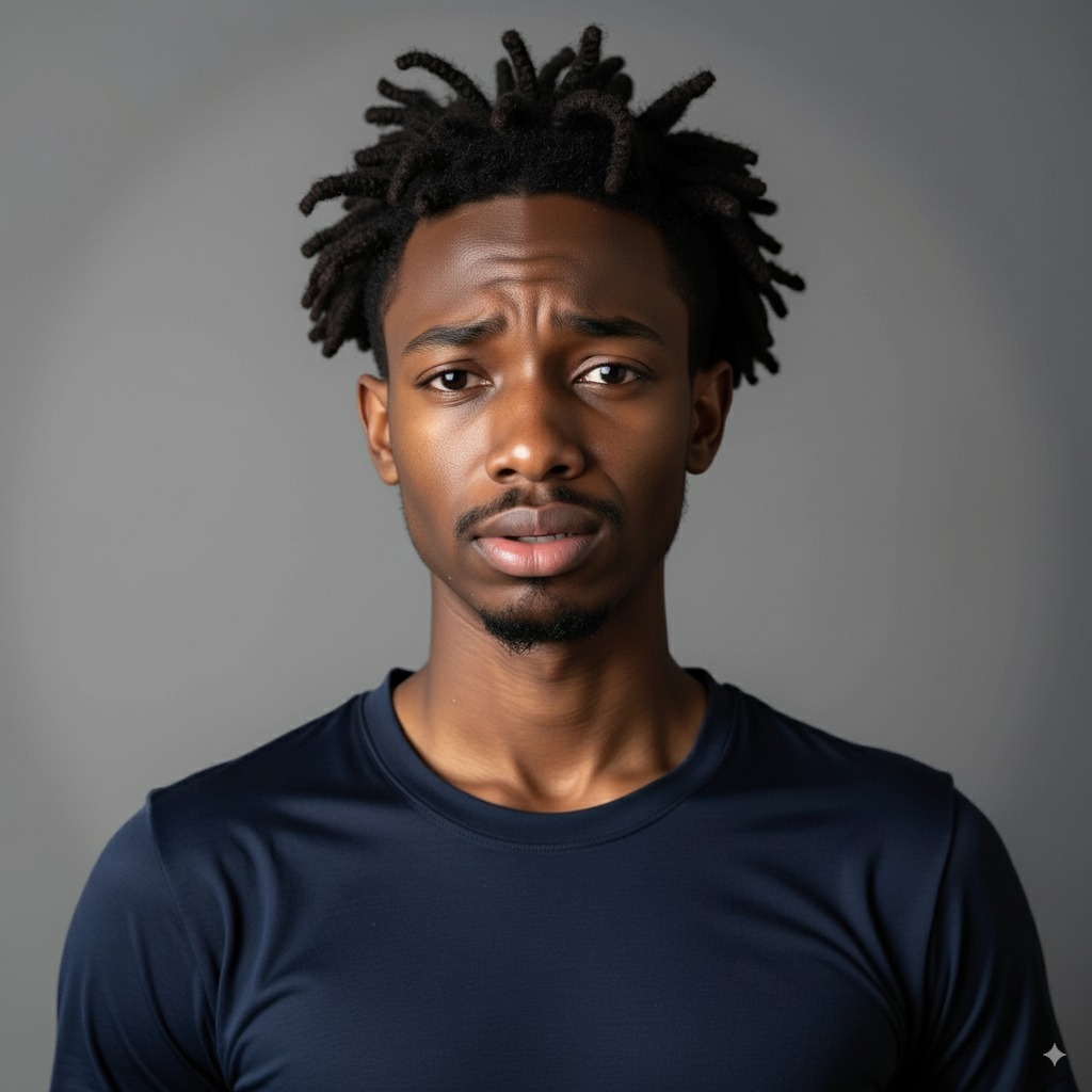 Using the provided image, intensely modify only the man’s facial expression to depict someone completely overwhelmed by raw, heartfelt sorrow with high intensity. The new expression should be hyper-realistic, with his inner eyebrows must be deeply raised and drawn together, forming sharp, vertical furrows at the top of his nose. His eyelids should droop heavily over his eyes, giving his gaze an unfocused, distant appearance. The corners of his lips are to be significantly pulled down, and his mouth should be slightly agape as if he is struggling to hold back an imminent sob. Visible tension in his cheeks and chin should communicate this powerful, crushing emotion. Absolute precision is required: the subject’s identity, background, lighting, and the overall photorealistic style must be perfectly preserved and unchanged from the original image.
