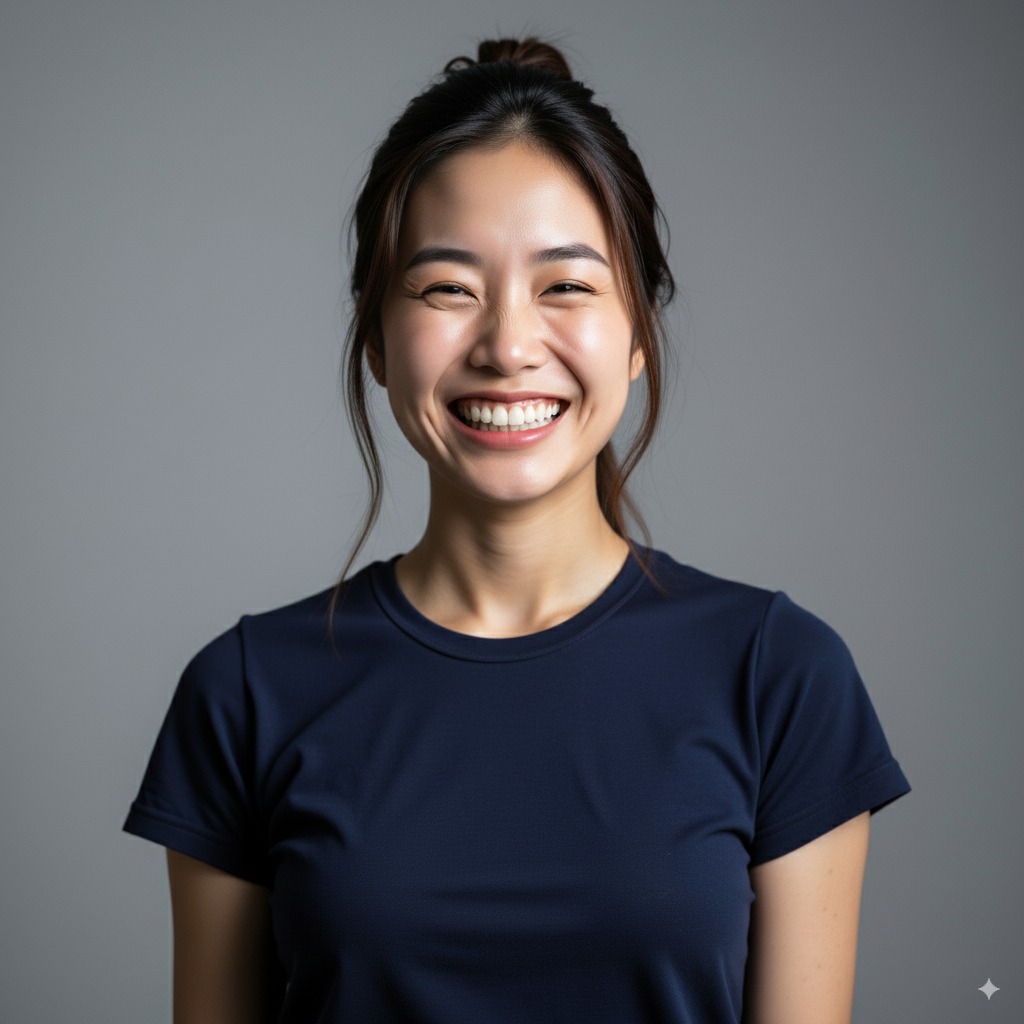 Using the provided image, intensely modify only the woman’s facial expression to display a exuberant smile, radiating genuine, full-faced joy with high intensity. The new expression should be hyper-realistic, with the corners of her lips must be widely stretched and slightly parted, clearly revealing her teeth. Her cheeks should be raised high, causing prominent crow’s feet around her joyfully squinting eyes. The muscles around her eyes and mouth are to be fully engaged, creating an overall radiant, energetic, and expressive appearance of pure happiness. Absolute precision is required: the subject’s identity, background, lighting, and the overall photorealistic style must be perfectly preserved and unchanged from the original image.