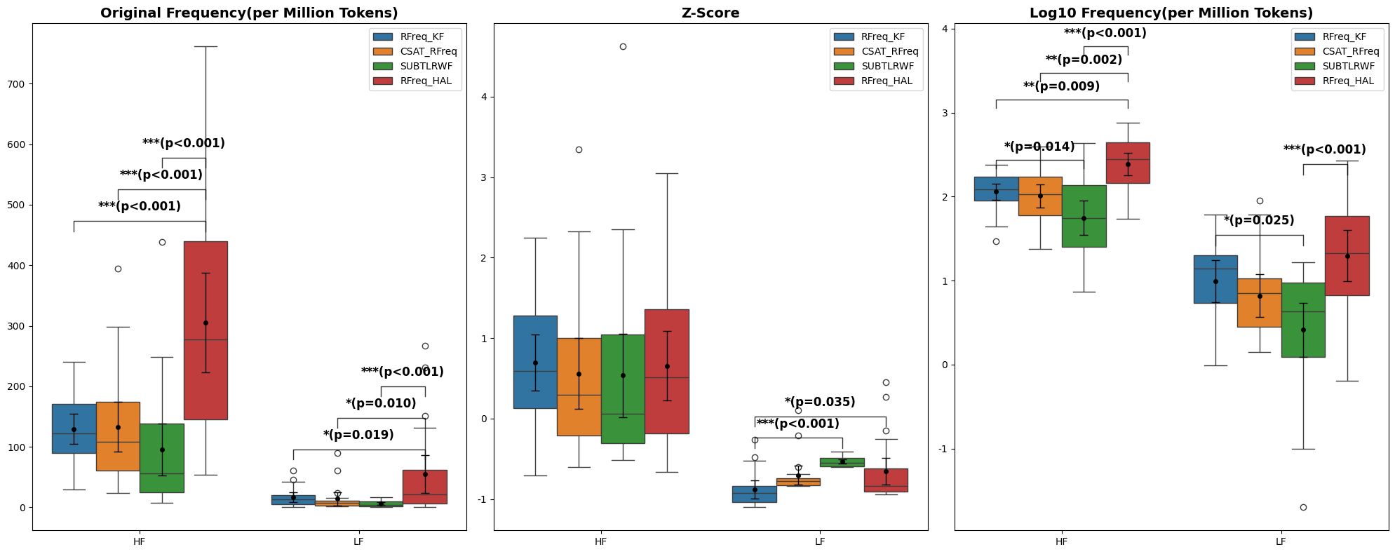 RFreq_HAL vs SUBTLRWF: diff = -209.512, CI[-303.022,-116.002], p = 0.0000 *** (유의함)