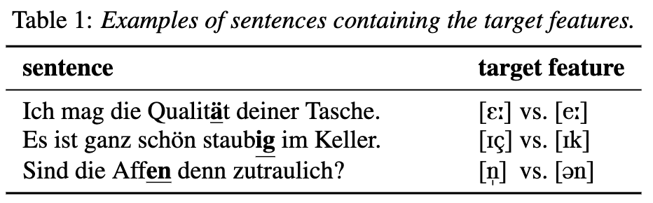 두 명의 독일어 원어민(25세 여성, 23세 남성)이 음향 차단실에서 고해상도(48 kHz)로 녹음한 문장을 사용.