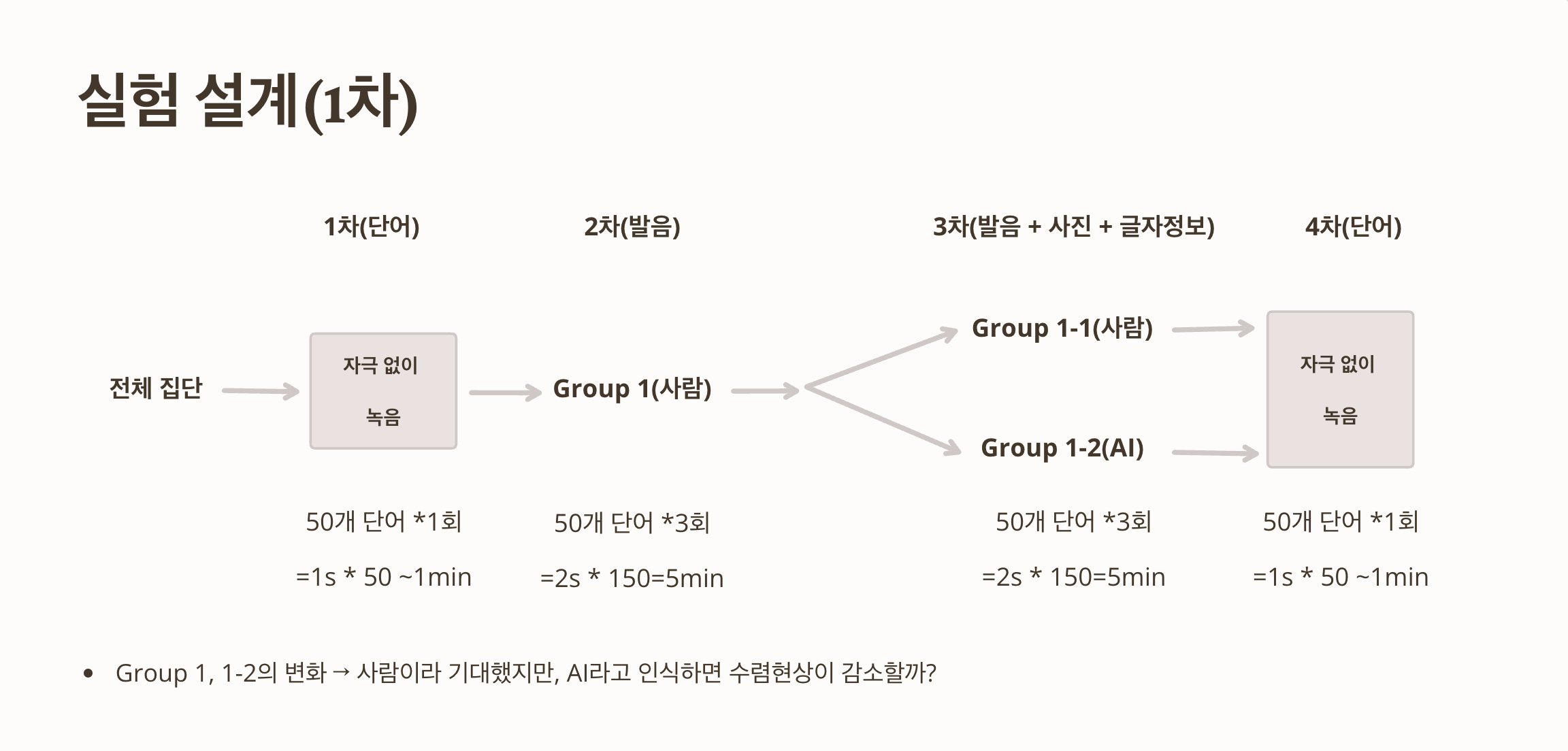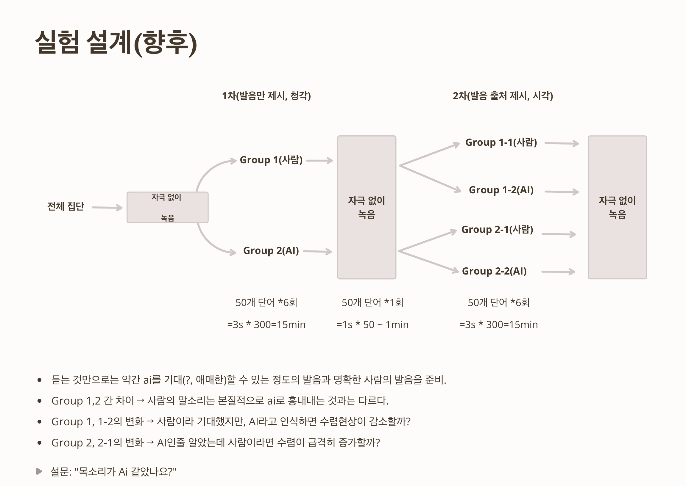 - 듣는 발음을 한 주체가 사람인지 AI인지 제공되는 인지정보 차이