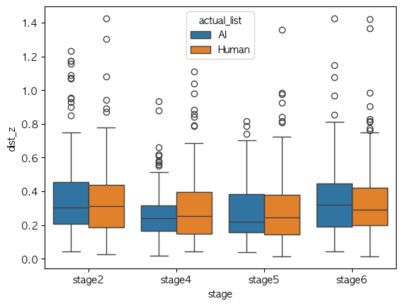 Identity Of Model(exp list) stage2 stage4 stage5 stage6 AI 0.380654 0.267384 0.275615 0.344808 Human 0.345755 0.302511 0.292520 0.343667