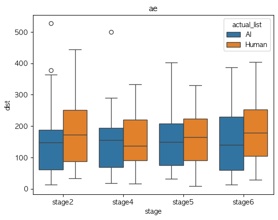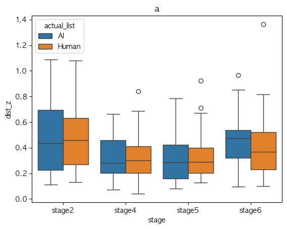 Identity Of Model(exp list) stage2 stage4 stage5 stage6 AI 243.890025 223.523232 228.252480 241.290115 Human 239.136157 236.261951 239.320735 236.621678 lobanov normed - distance