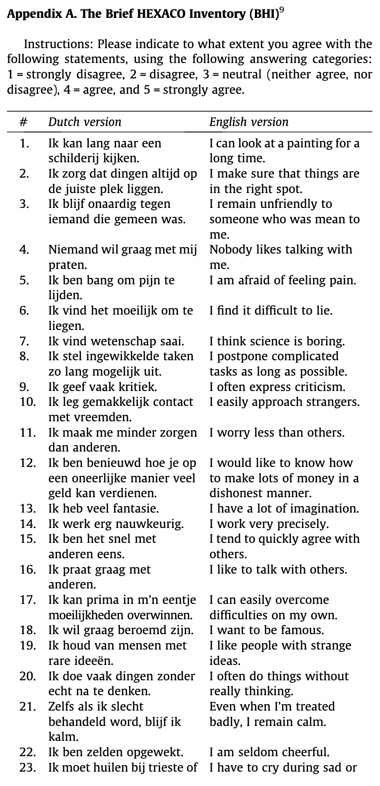 - Hexaco short version & GAAIS(20개 문항, 리커트 척도, 240회 인용)
