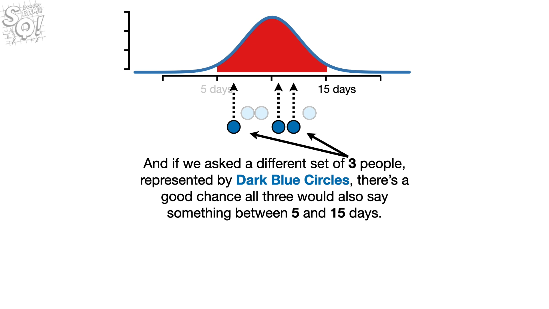 회복 기간 분포를 아래와 같이 설정하고 샘플링을 통해 3개의 데이터를 가진 각각의 경우에 대해보면, 모두 95% 구간에 잡힌 걸 볼 수 있다.