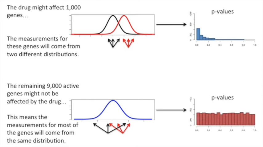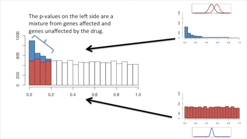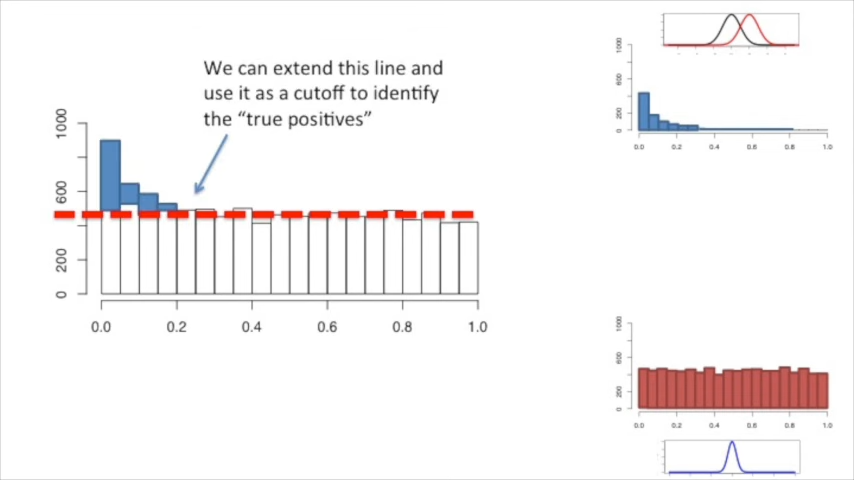 ์์์ .05 bins์ ํด๋นํ๋(์๊ฐ์ค ๊ธฐ๊ฐ) p-value๋ค์ true positive์ false positive์ธ๋ฐ, ์ด๊ฑธ ๋ถ๋ฆฌํ๋ ๋ฐฉ๋ฒ์ ๋จ์ํ ๋ ๋ฎ์ ๊ฐ๋ค๋ง ์ทจํ๋ ๊ฒ.