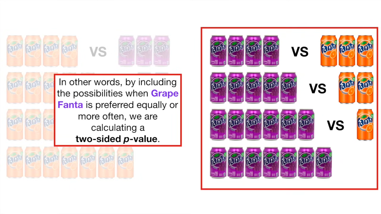 만약 둘 중 선호도가 더 없다고 가정하면, 사람들이 두 환타를 각각 고를 확률은 .5로 동일할거다.