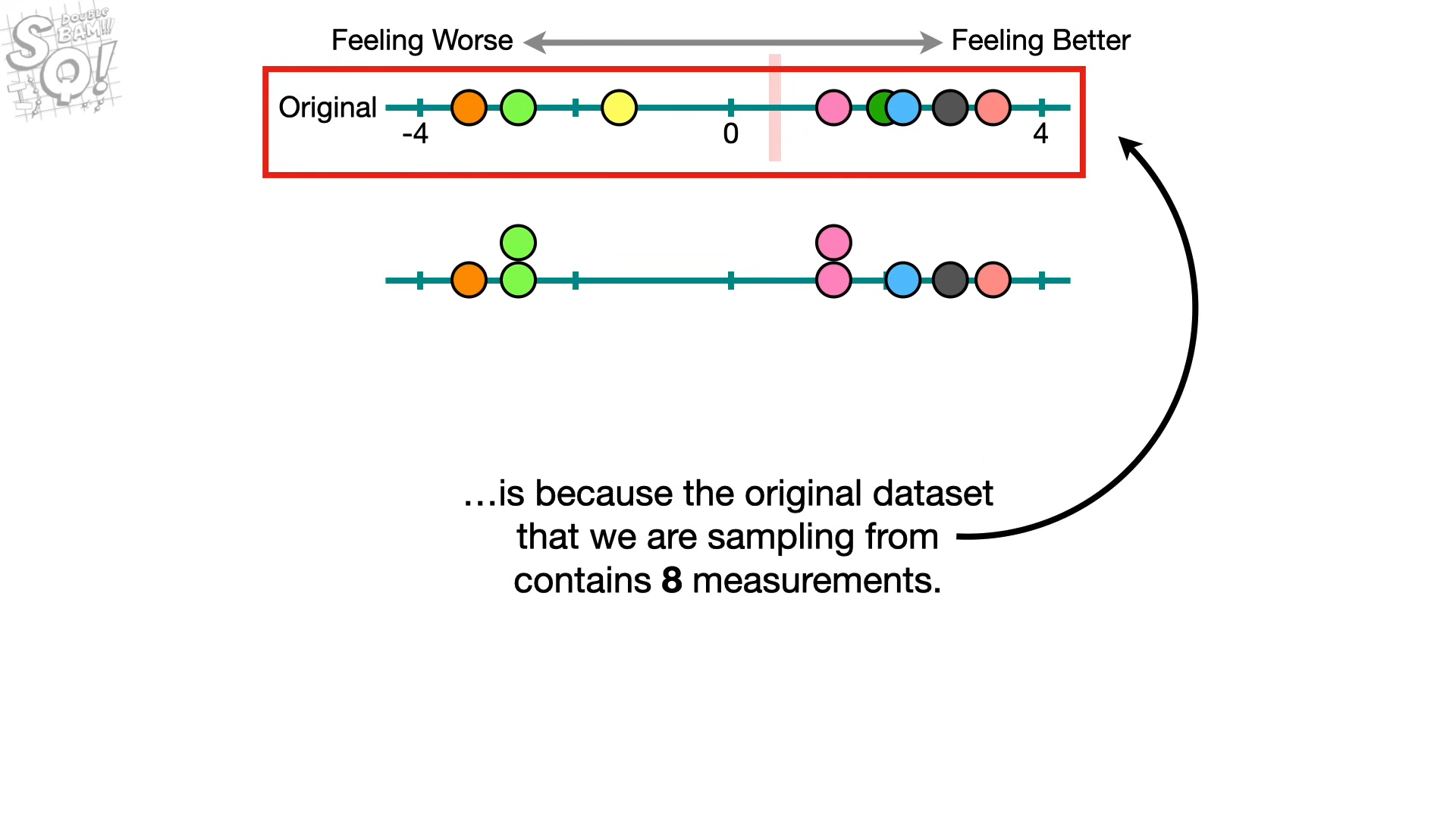 8개를 추출하는 것은 원본 셋이 8개라서 → 만약 원본으 크기가 10개였다면, 10으로..