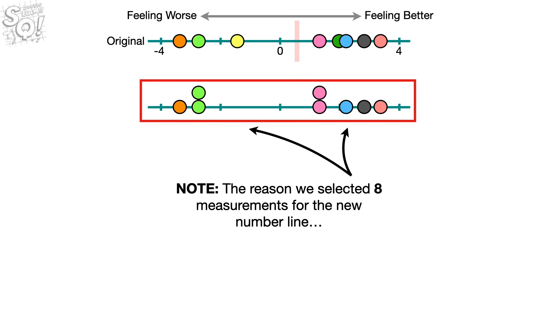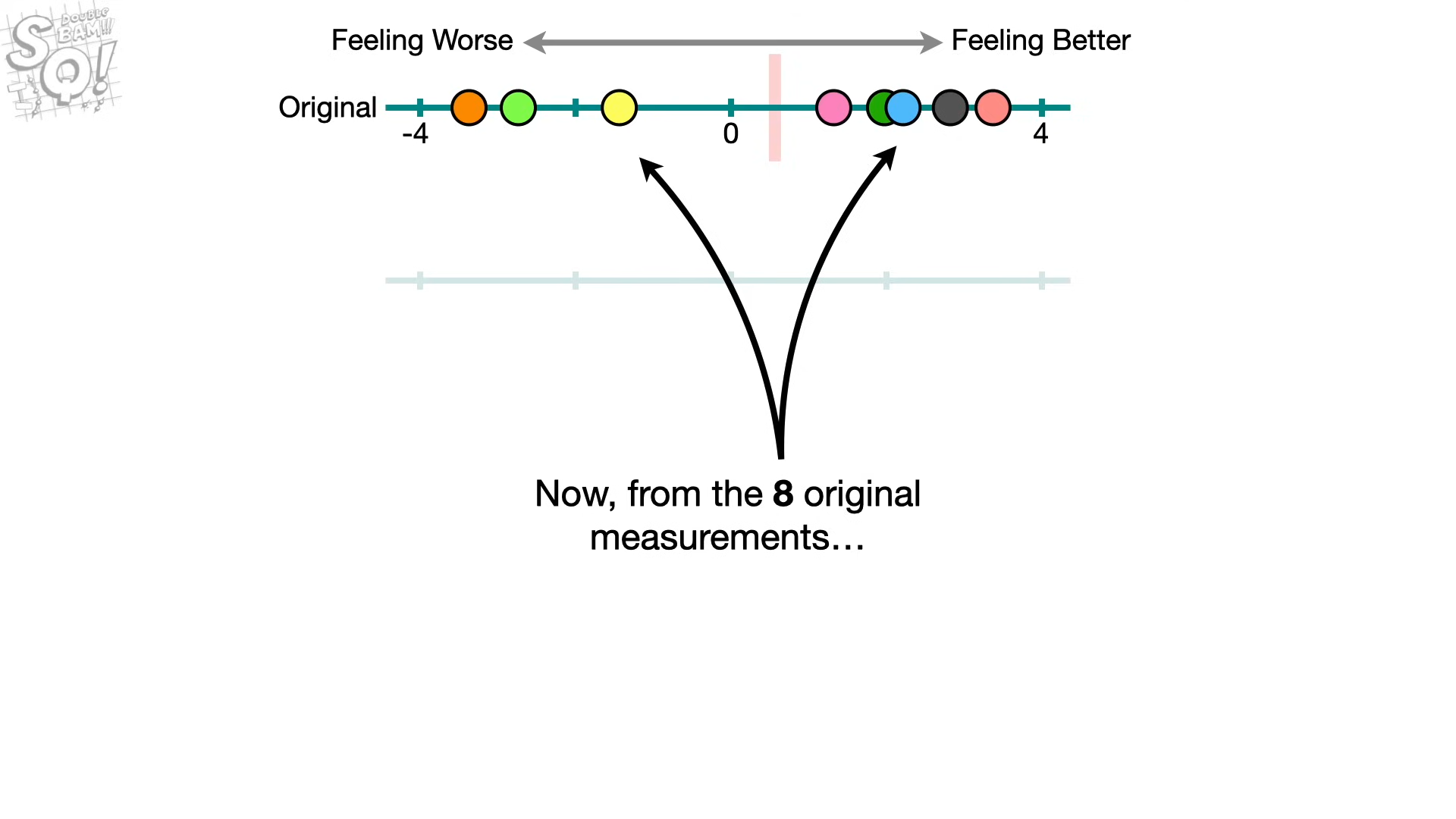 하지만, 만약 5명의 사람들이 점점 건강해져서 후한 점수를 준것이고, 3명은 불건강한 생활로 인해 나쁜 점수를 준 것이라면,