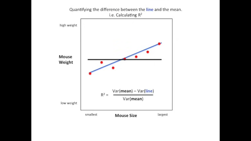 새로운 line은 평균보다 데이터를 더 잘 설명하는가? 그렇다면, 얼마나 더 잘 설명하는데?