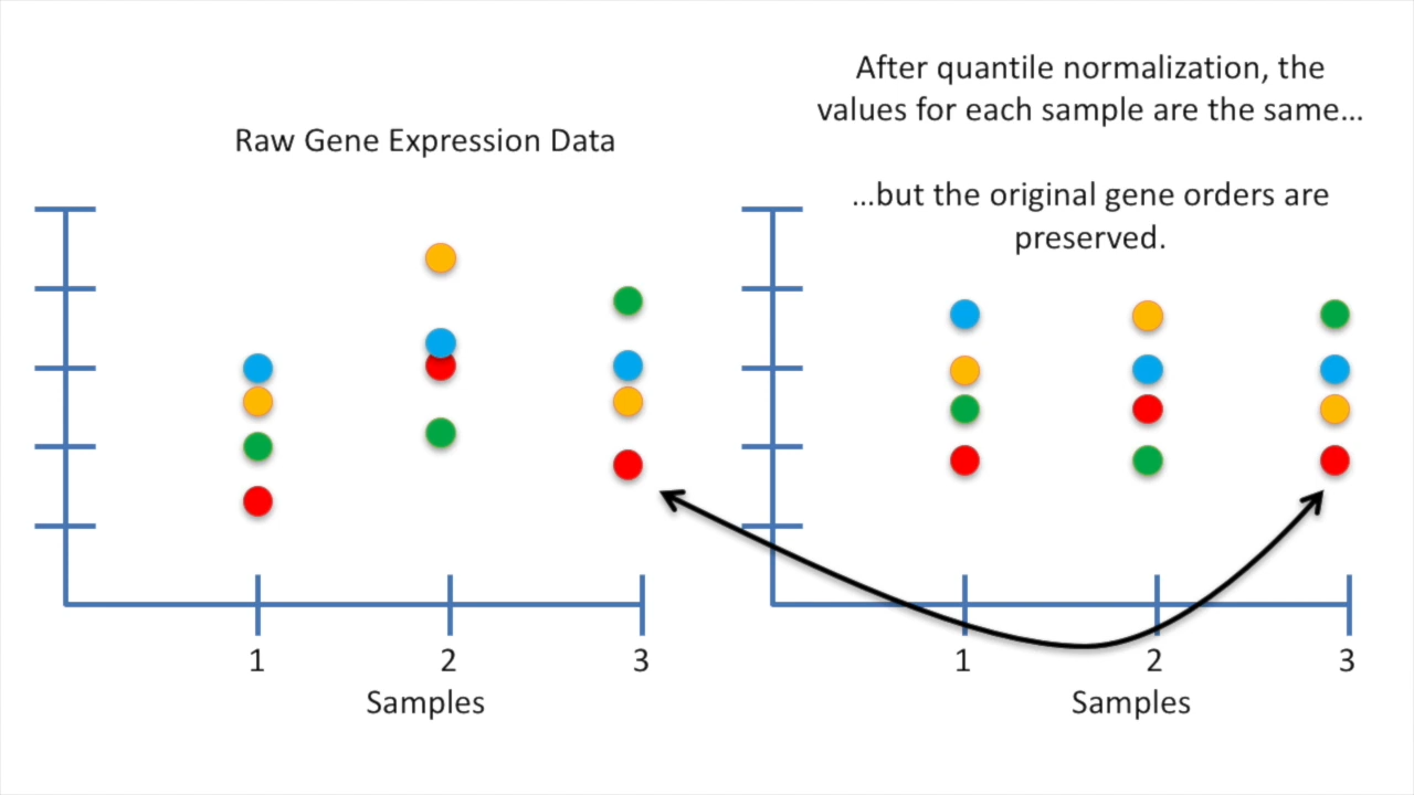 • 여러 샘플 간에 표현량의 순위를 기준으로 데이터를 정렬하고 분포를 동일하게 맞추면, 같은 유전자가 샘플 간에 비슷한 상대적 위치를 가지게 됩니다.